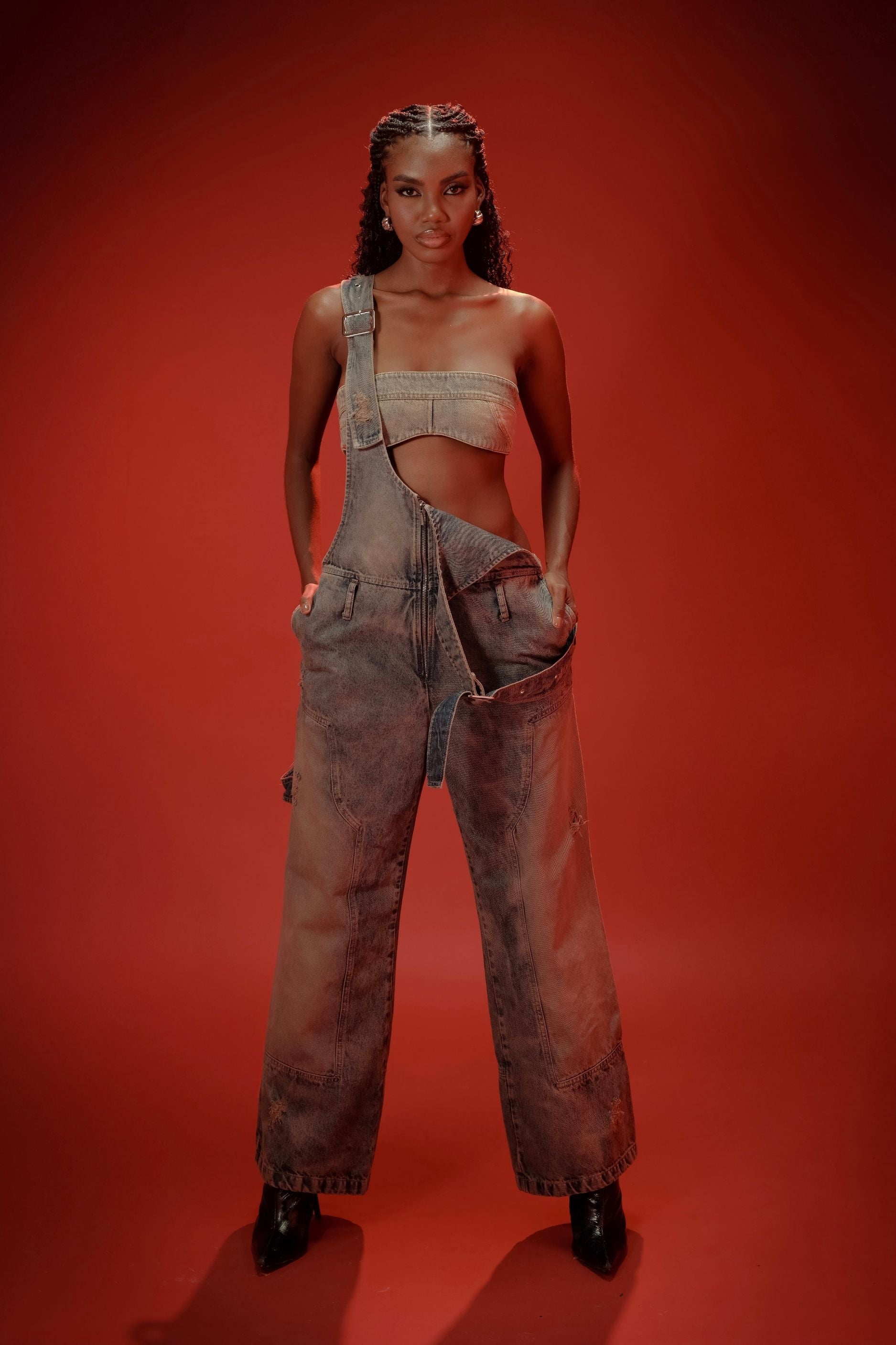 Confeccionado en índigo premium 100% algodón, este diseño presenta una silueta recta que equilibra comodidad y estilo. Incorpora bragueta con cierre funcional y botón contramarcado, además de hebillas regulables en los tirantes, lo que permite ajustar la medida y lograr un calce preciso.