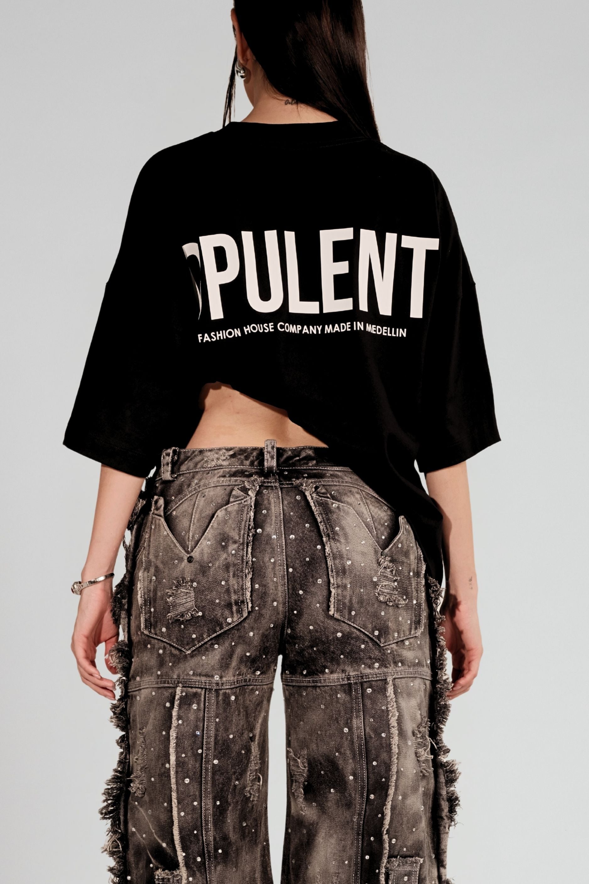 CAMISETA PIXYS fabricada en 100% algodón con tacto frio, estampado OPULENT en la parte trasera y delantera en alta densidad 3D, con silueta oversize.