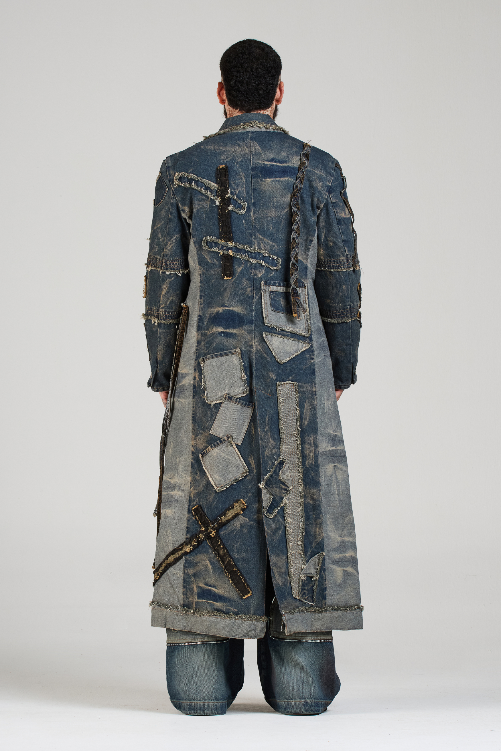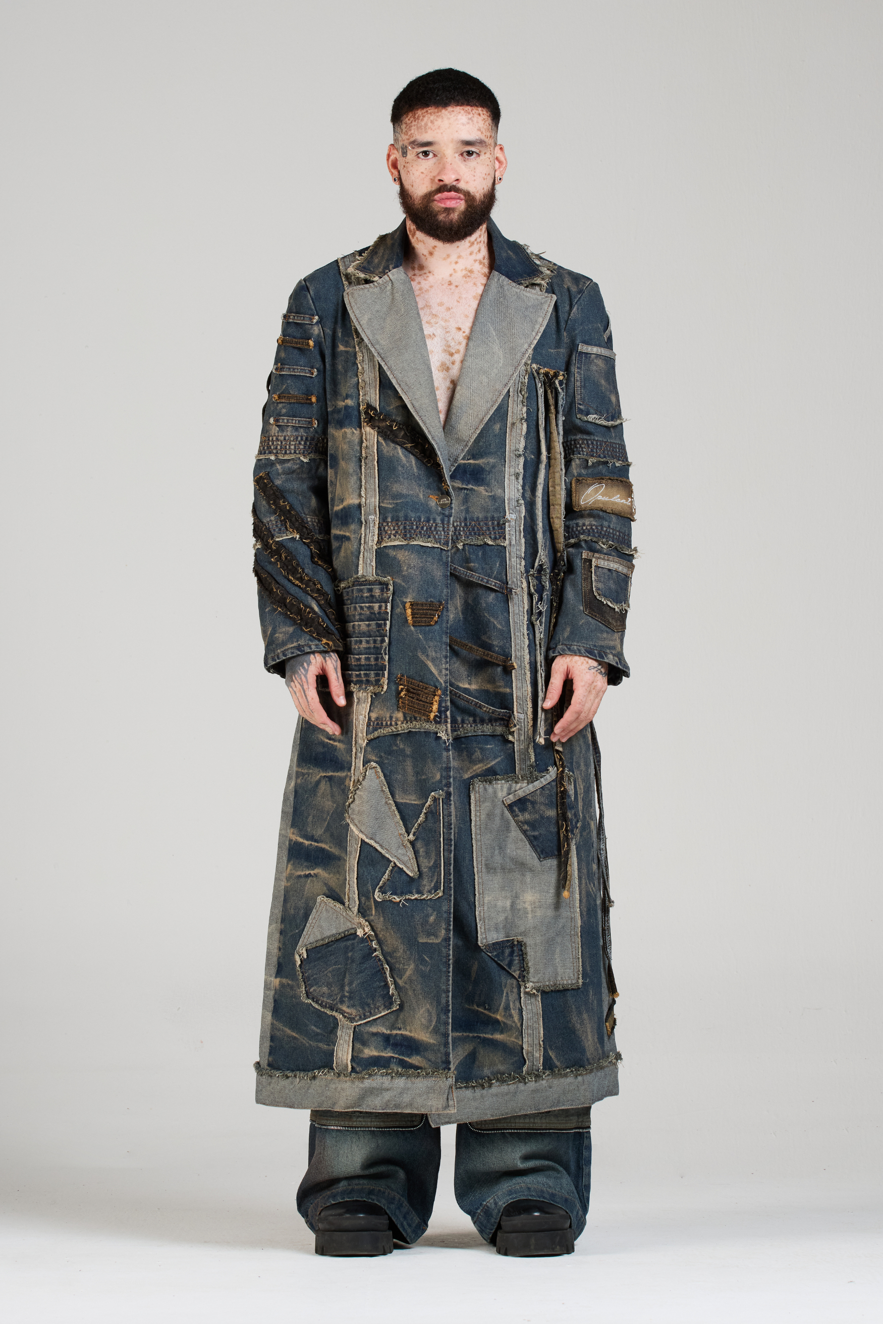 Elaborado en cortes asimétricos, destaca por su paleta en escala de tonos Azules que aporta profundidad y carácter único a la pieza. Su interior está forrado completamente y contramarcado con los logos OPULENT, garantizando exclusividad y una identidad inconfundible.