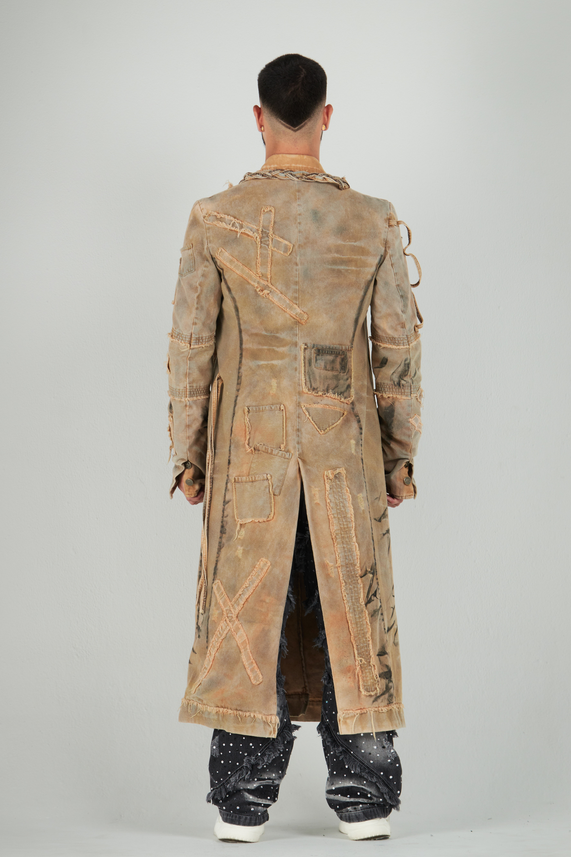 Elaborado en cortes asimétricos, destaca por su paleta en escala de tonos café claro, que aporta profundidad y carácter único a la pieza. Su interior está forrado completamente y contramarcado con los logos OPULENT, garantizando exclusividad y una identidad inconfundible.