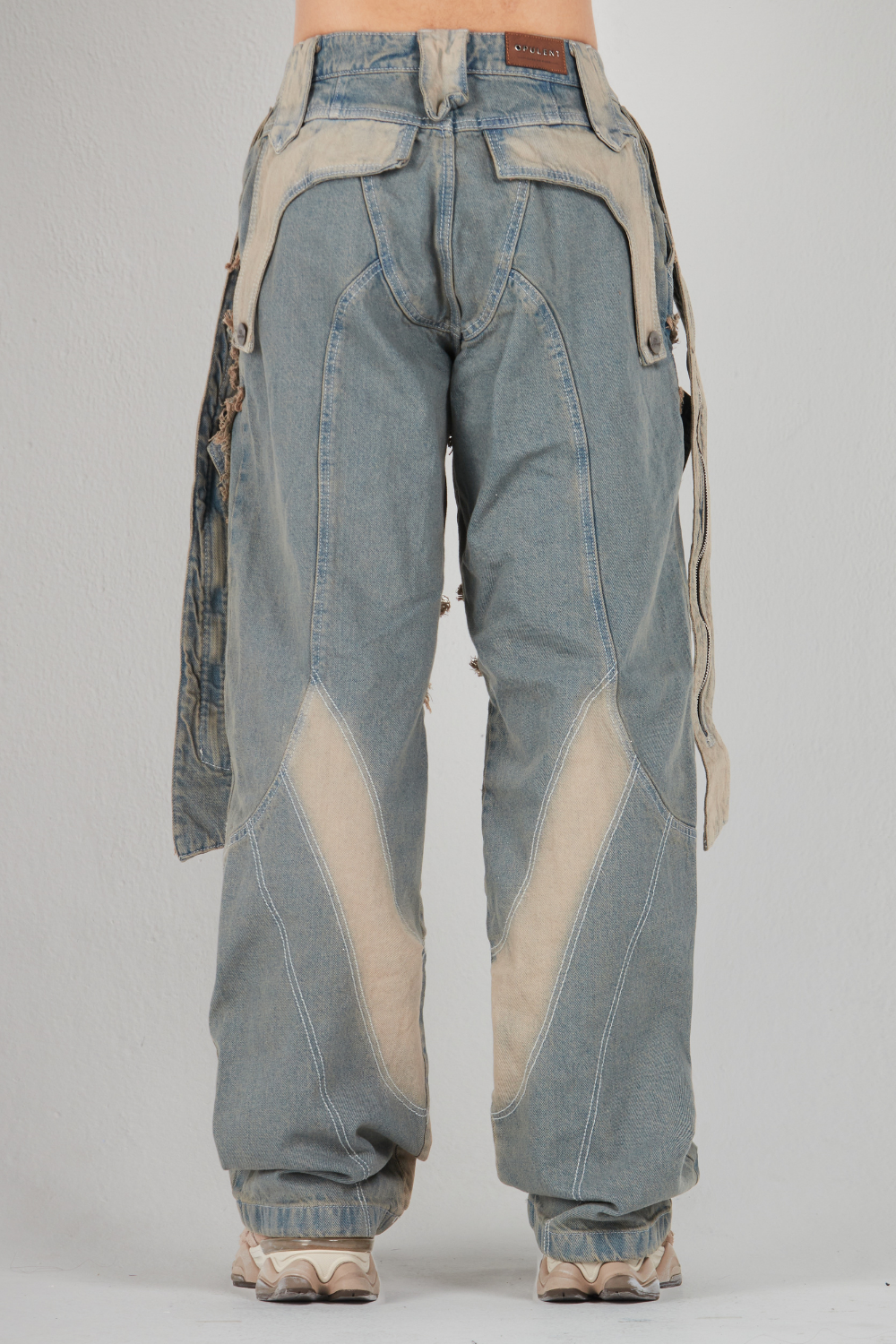 El acabado en escala de azules claros, logrado mediante un proceso exclusivo de OPULENT, convierte a este jean en una pieza distintiva que equilibra modernidad, detalle artesanal y versatilidad.