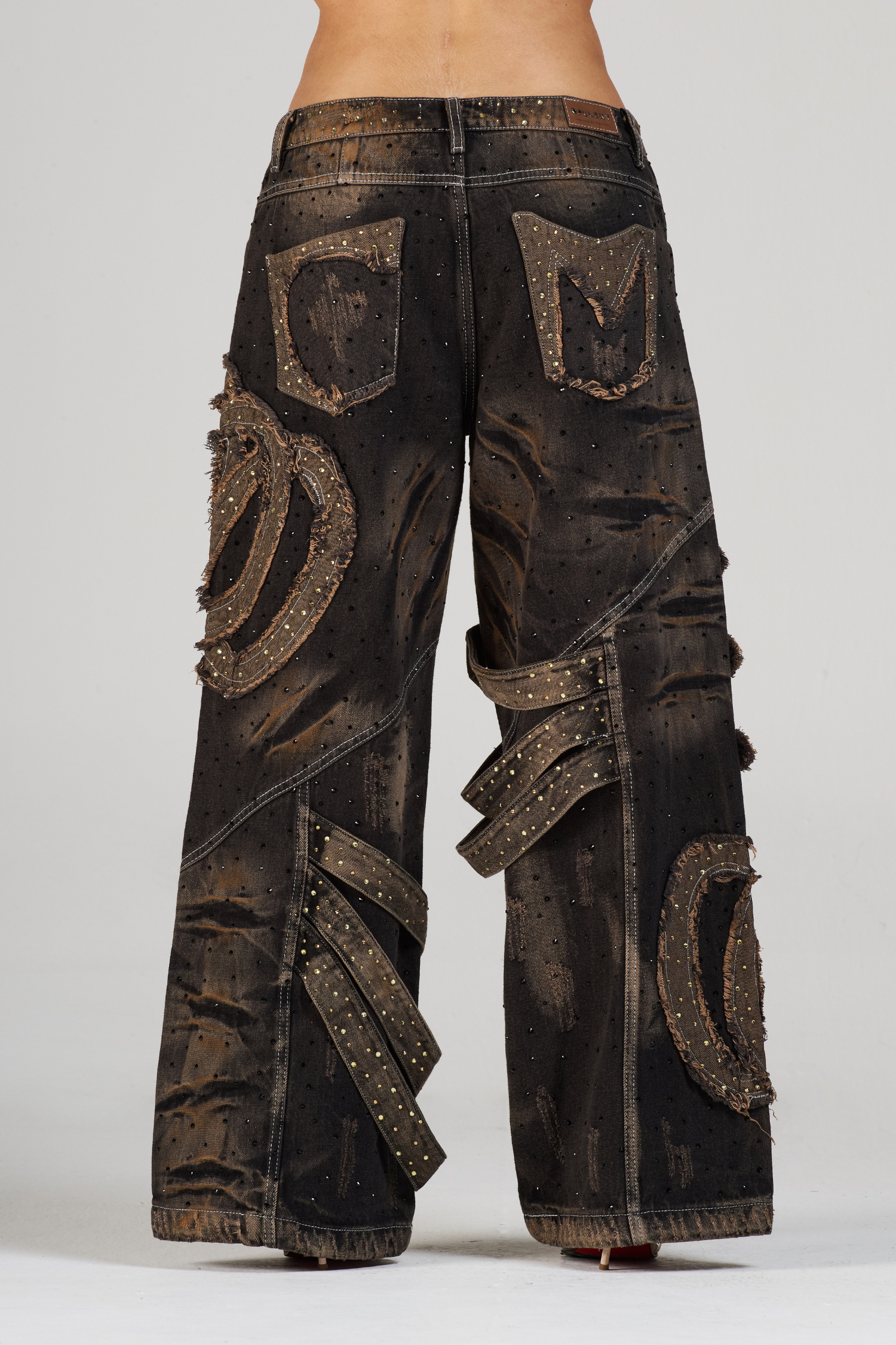 En la parte posterior, los bolsillos en forma de C y M hacen referencia directa a Casa de Moda, reforzando la narrativa visual de la prenda.