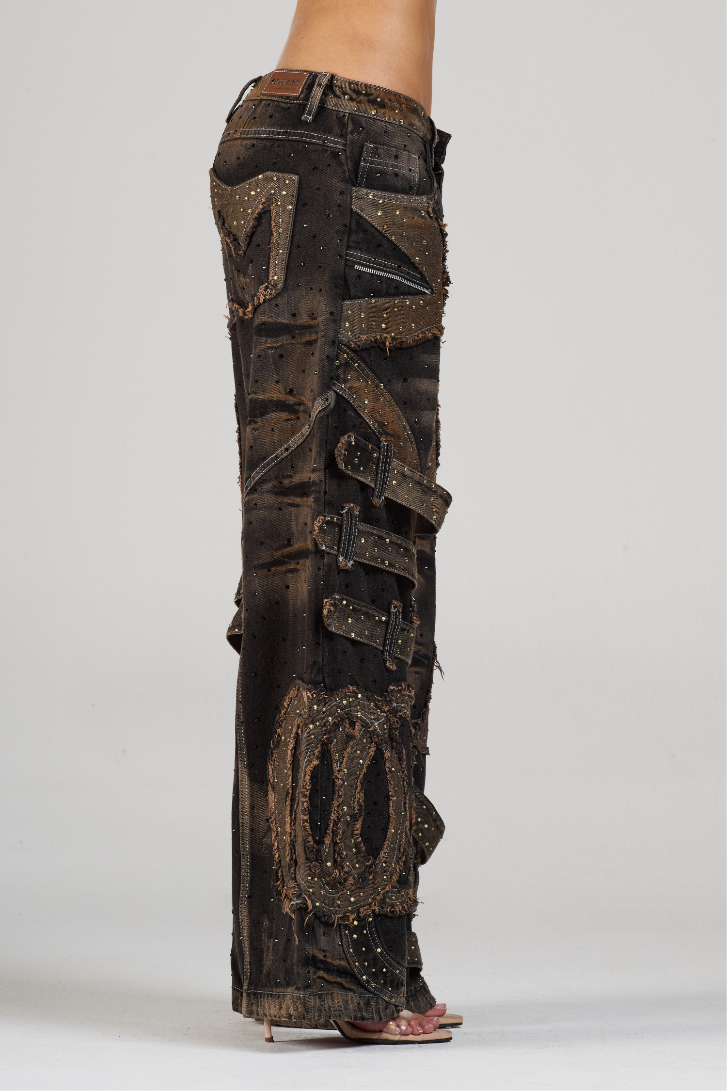 Su acabado en negro y dorado, con dirtys en tonos tierra y bigotes estratégicos, junto con una horma precisa, consolidan su carácter distintivo y vanguardista.