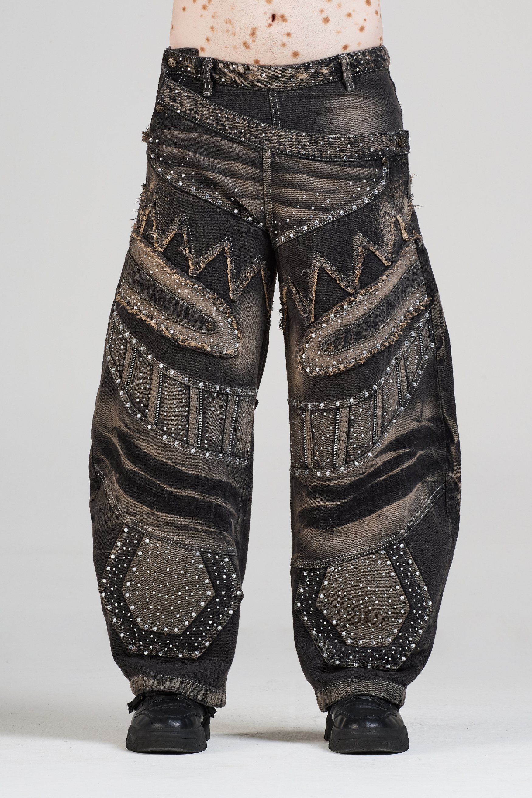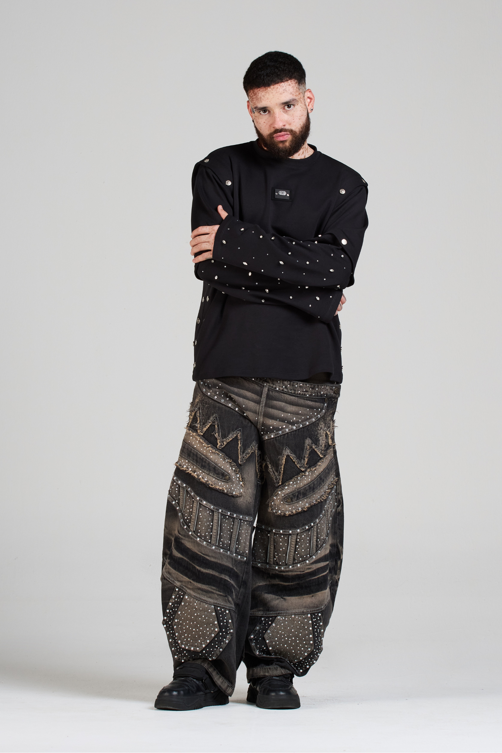Diseñado con botón contramarcado y pedrería cristal aplicada a mano, el Jean Face CofeBlack presenta una silueta baggy con amplitud en la pierna. Al ajustar la bota, adopta una forma moderna conocida como Skater Fit, perfecta si buscas un jean voluminoso sin arrastrarlo al caminar.