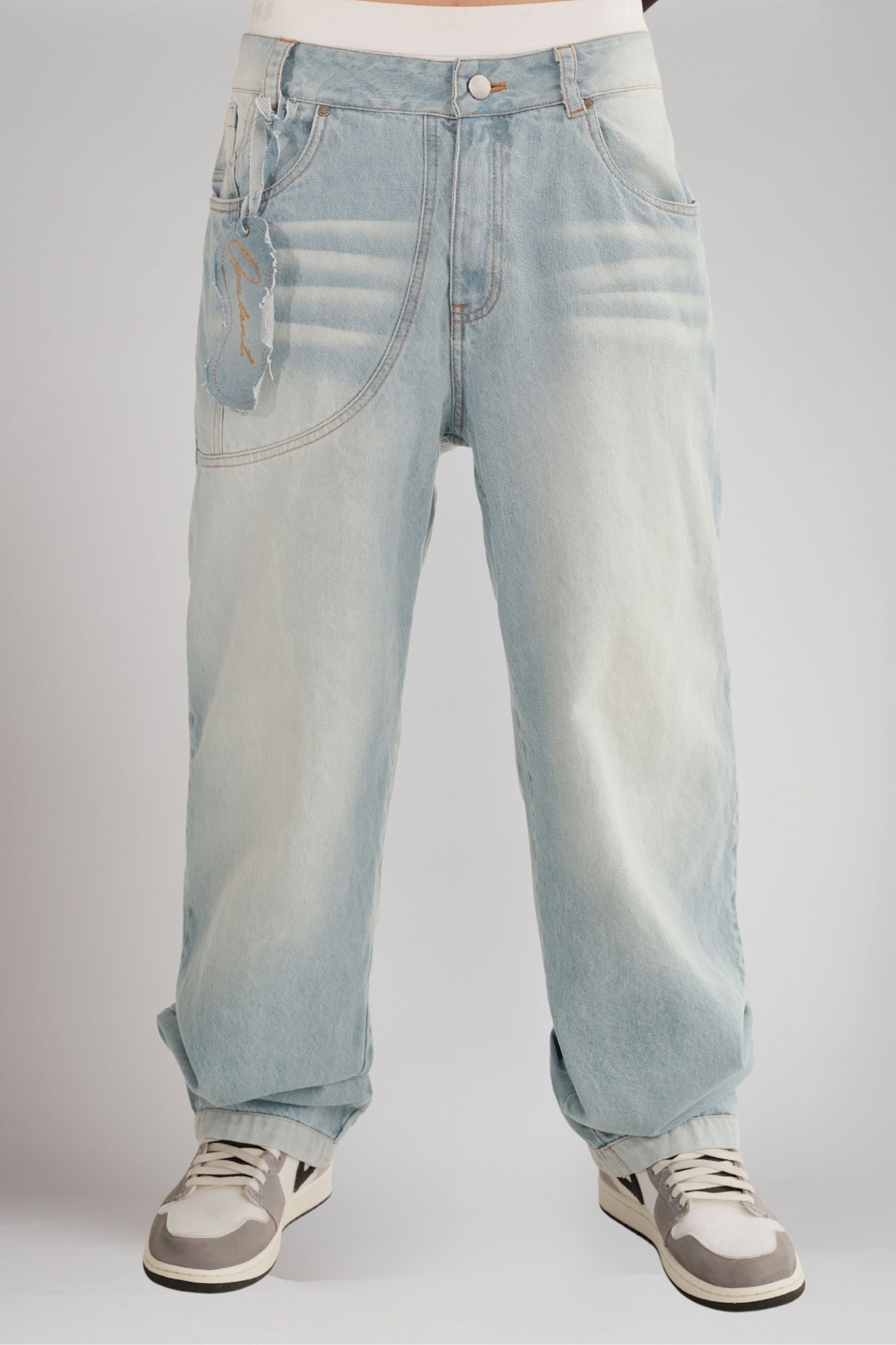 Confeccionado en índigo 100% algodón, este modelo incorpora un diseño sobrio pero distintivo. Sus bolsillos traseros presentan un acabado exclusivo, acompañado de un botón contramarcado y un corte frontal con costura visible que aporta detalle y estructura. Además, los hilos en contratonos refuerzan el contraste del diseño.
