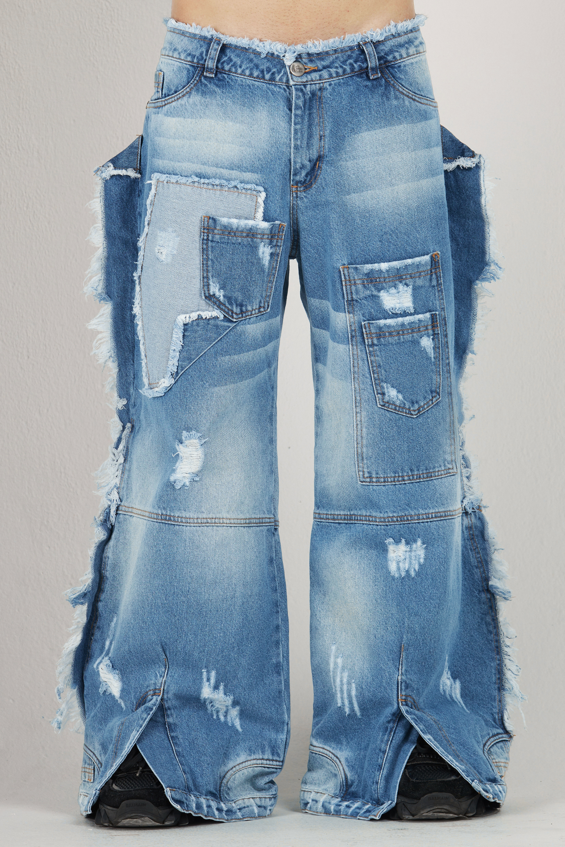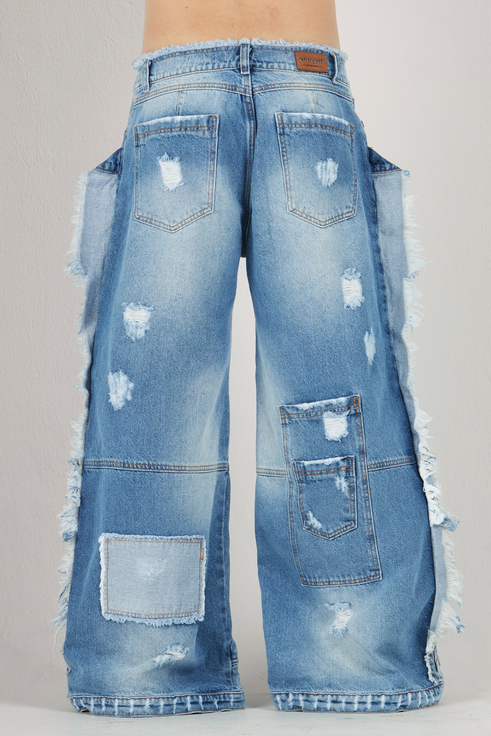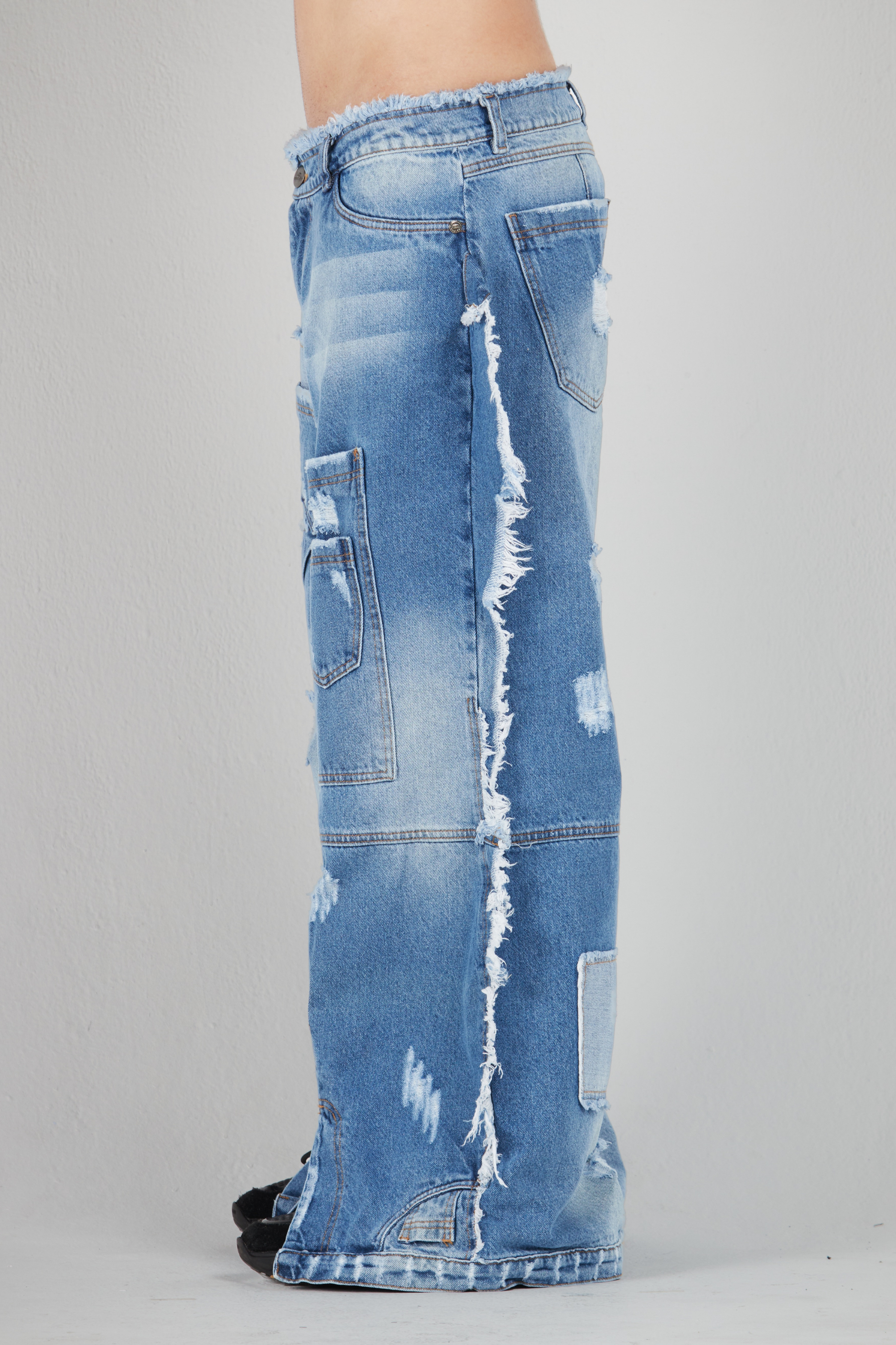 Modelo descaderado, confeccionado en índigo 100% algodón con una construcción impecable que garantiza ajuste y durabilidad. Su diseño integra aletas laterales desflecadas, costuras visibles y detalles en zonas de desfleque, que aportan carácter y refuerzan la identidad de la prenda.