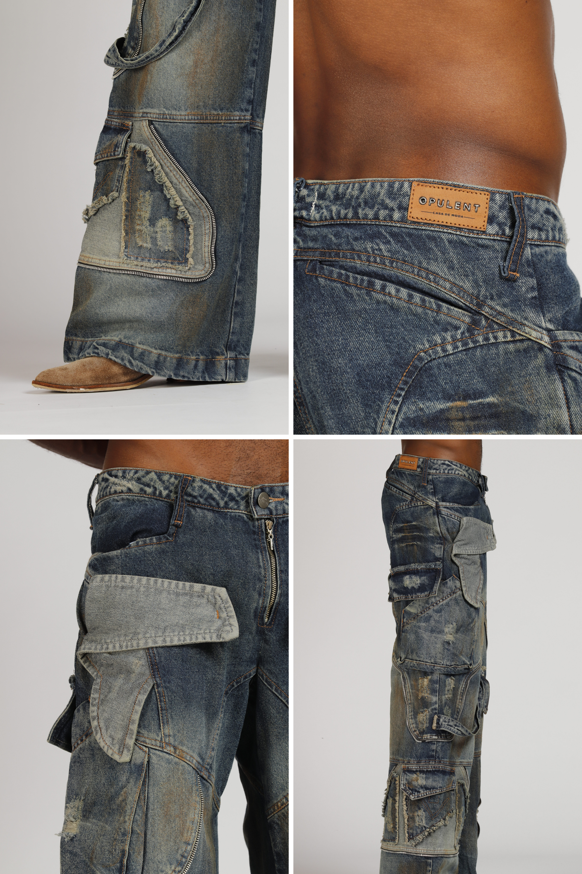 El acabado se desarrolla en una escala de azules oscuros, trabajado bajo un proceso exclusivo de OPULENT, que aporta contraste y sofisticación. La combinación de elementos técnicos y detalles artesanales convierten a esta prenda en una pieza esencial dentro de la colección masculina.