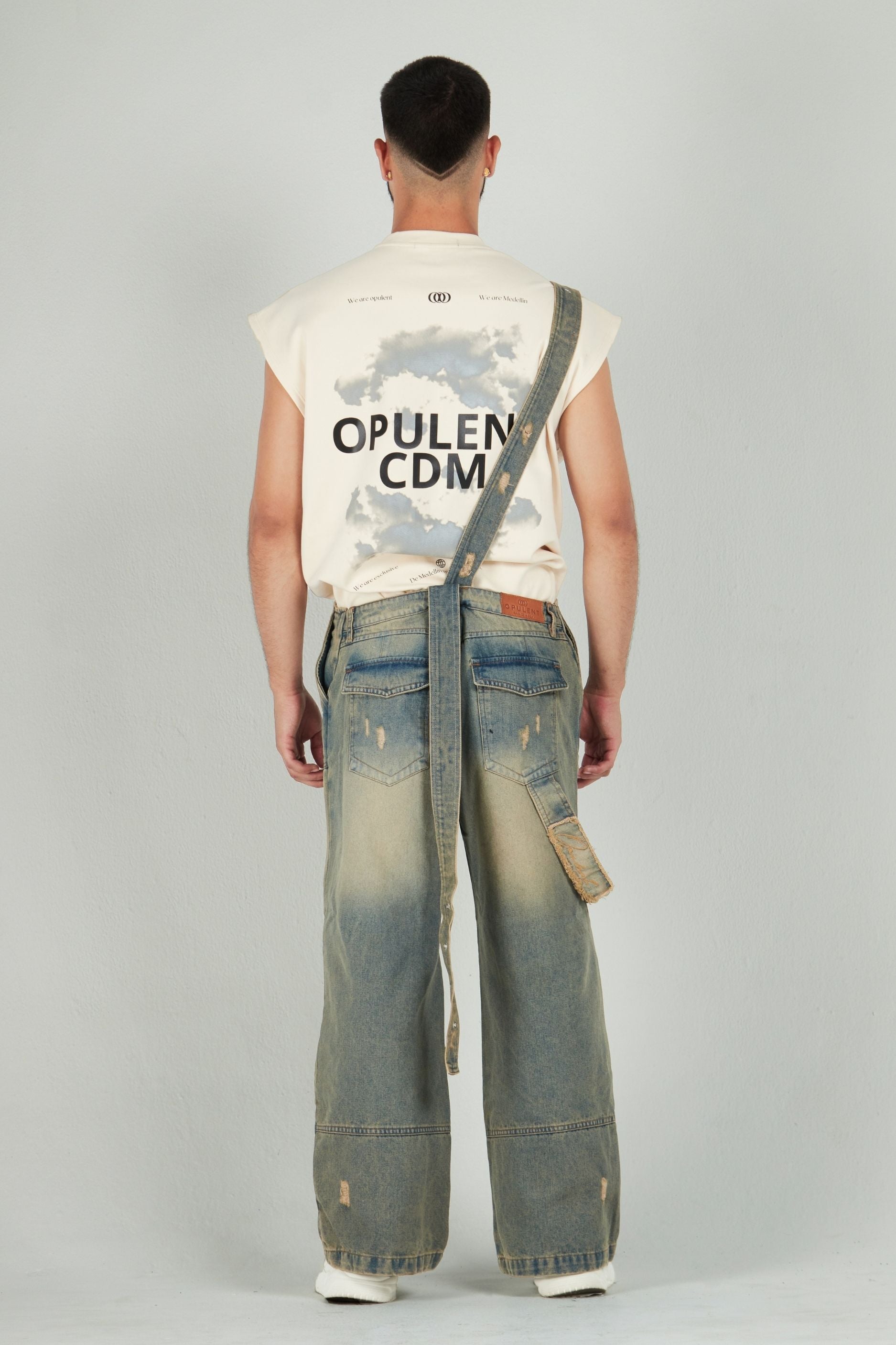 Su construcción incorpora cortes estructurados, costuras visibles y detalles en desfleque, que refuerzan la identidad de la prenda. El acabado está desarrollado en una escala de azules, resultado de un proceso de color exclusivo de OPULENT, aportando contraste y sofisticación.