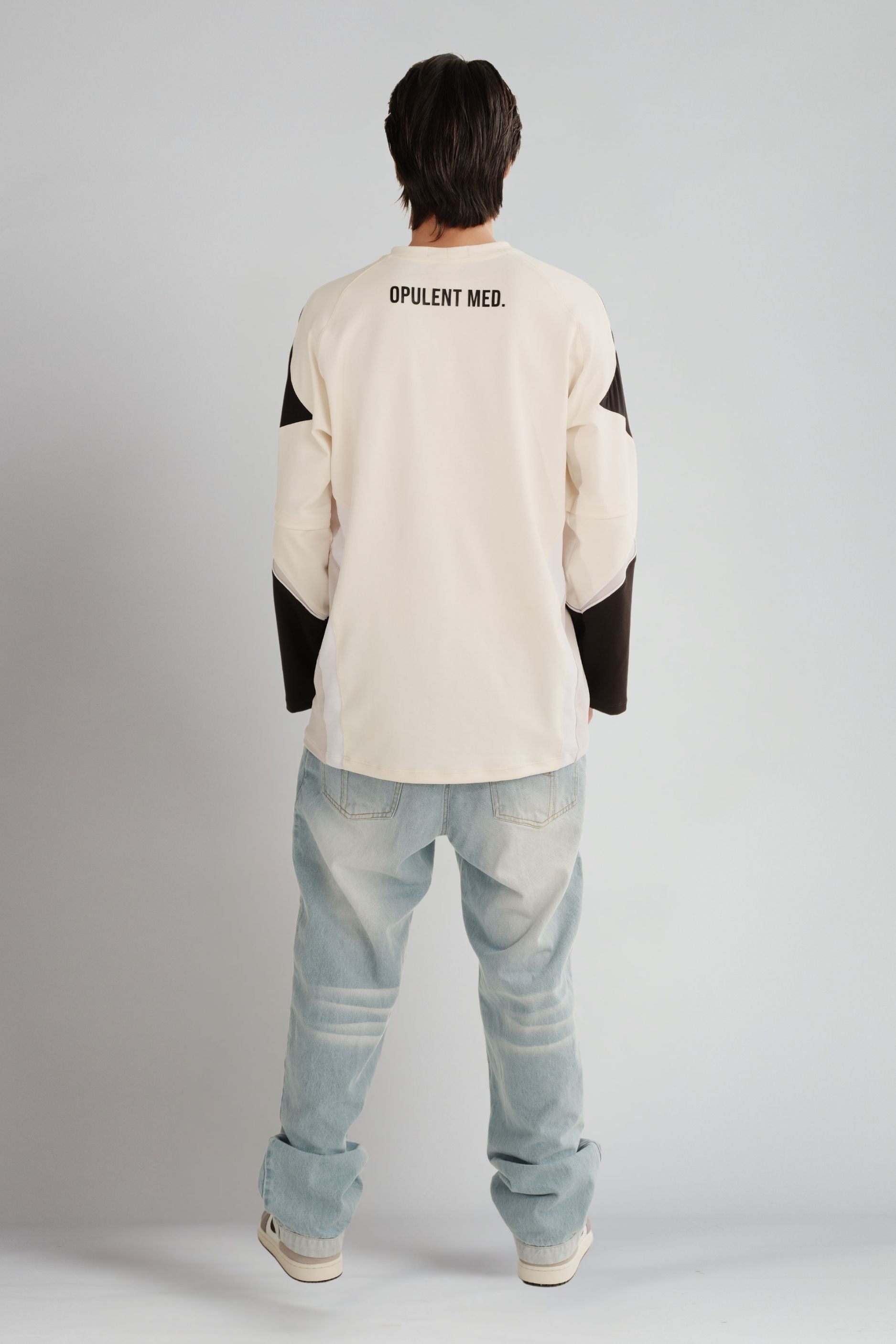 Con bolsillos traseros de diseño exclusivo, este modelo incorpora botones contramarcados, corte con costura frontal y hilos en contratonos que refuerzan su construcción. Su acabado se logra mediante un proceso de color en escala de azules, desarrollado exclusivamente por OPULENT.