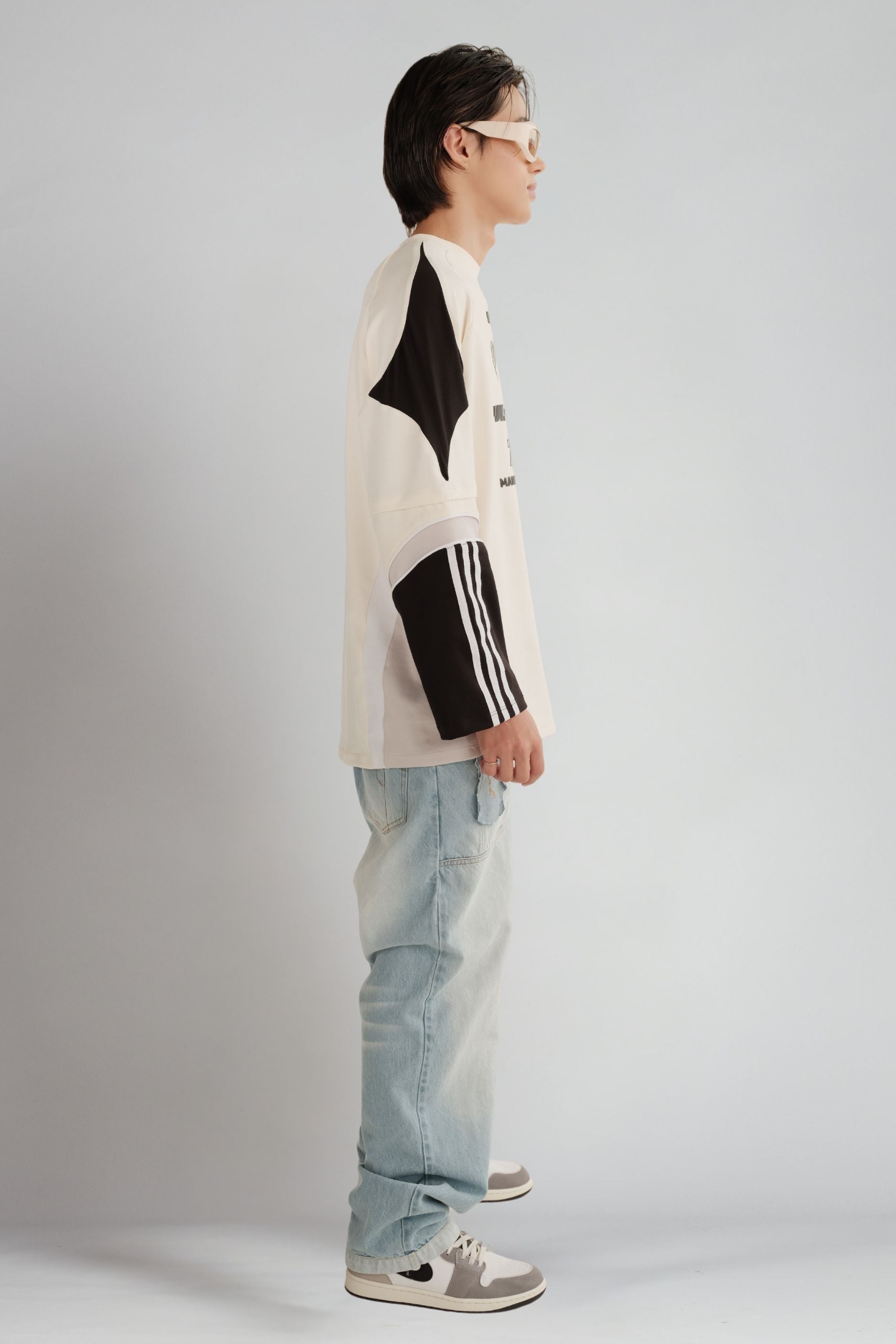 Confeccionado en 100% algodón, ofrece una textura fresca y cómoda ideal para el uso diario. Su construcción integra más de 15 cortes y la combinación de tres tipos de telas diferentes, logrando un diseño complejo y distintivo. Incluye estampación en alto relieve en la parte frontal y trasera, un detalle que reafirma la identidad de la marca.