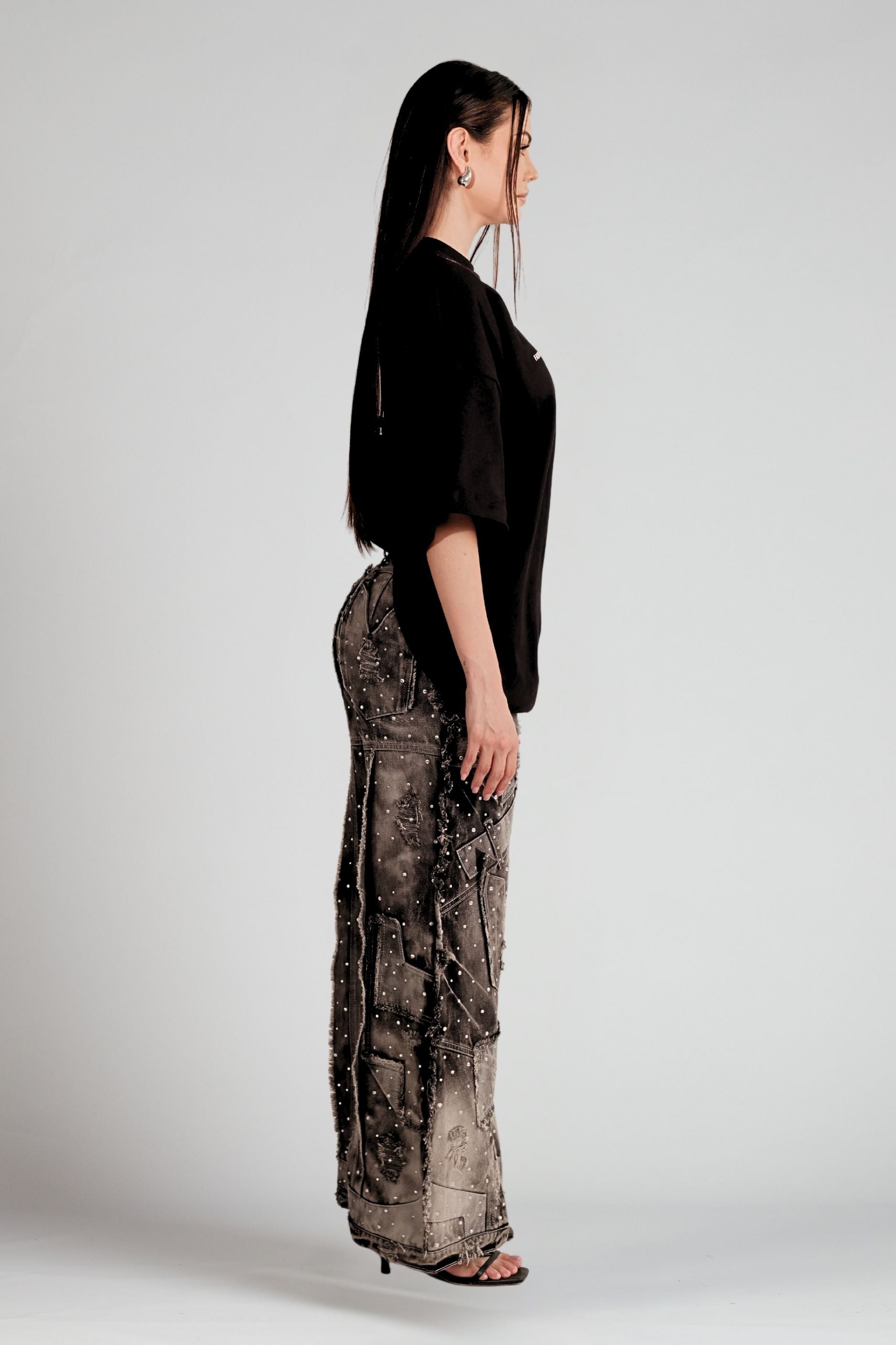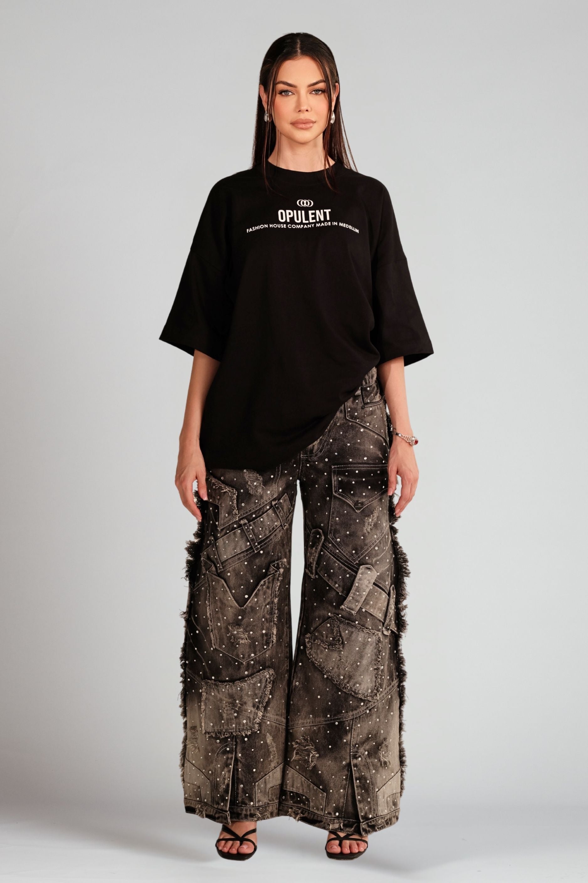 Elaborado en índigo premium 100% algodón, trabajado con un proceso exclusivo de color en escala de grises, característico de OPULENT. Su construcción precisa y su acabado único consolidan la identidad de la prenda.