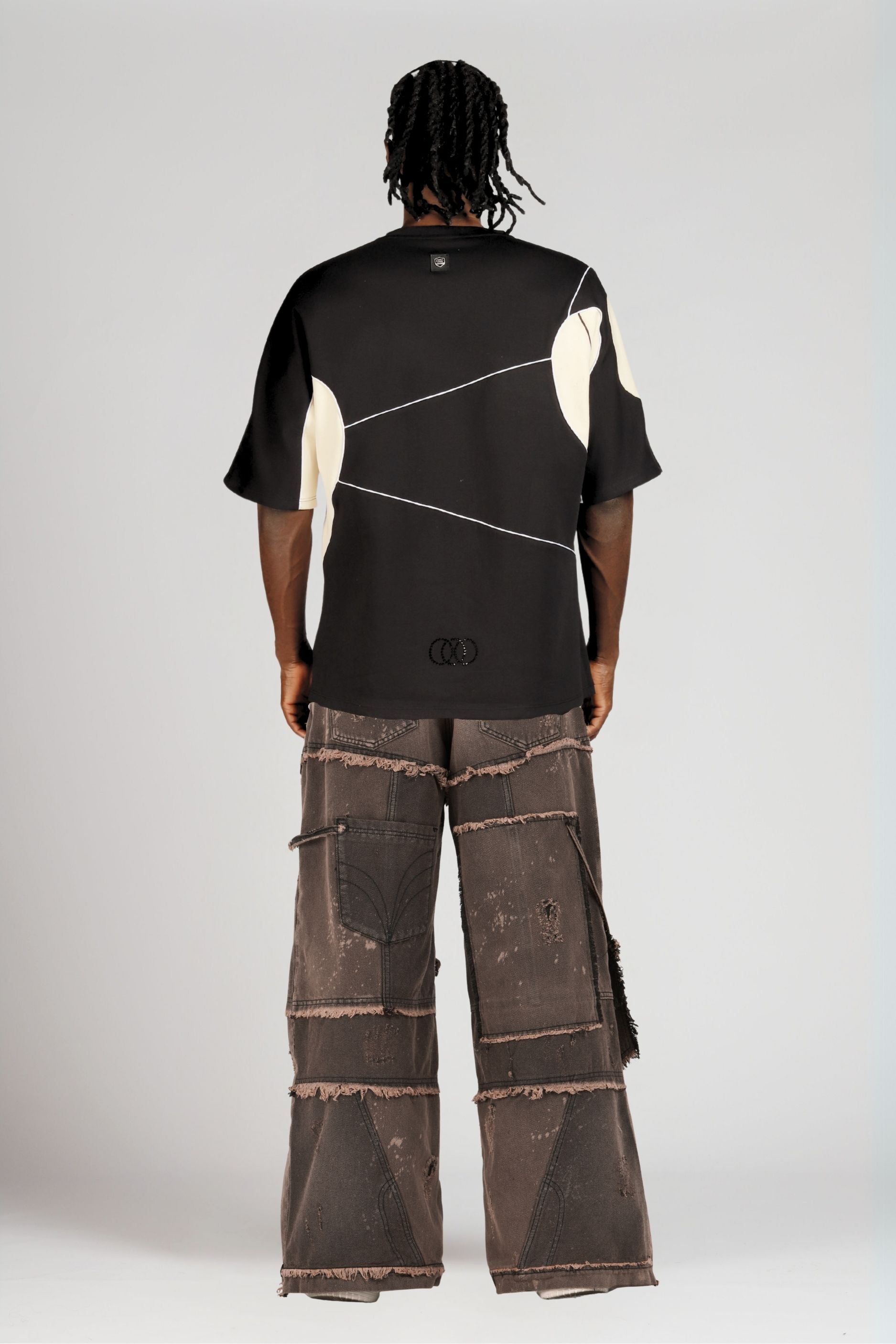 Elaborada en franela 100% algodón de tacto frío, pensada para frescura y comodidad. Su construcción presenta múltiples cortes en negro y beige, además de un sesgo alma que aporta textura al diseño. La horma semi oversize asegura un ajuste cómodo y moderno.